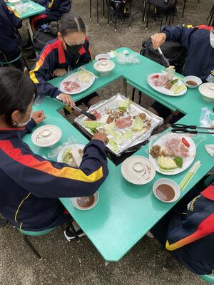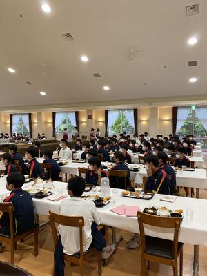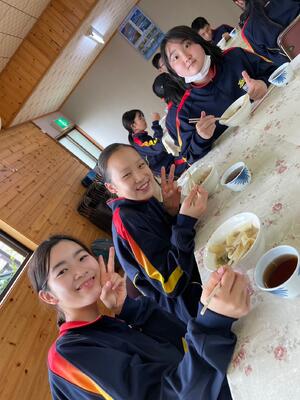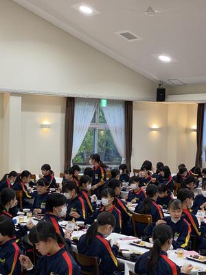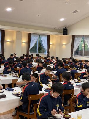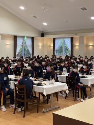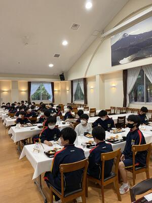 宿舎に到着して、夕食の時間です。このあとお楽しみのキャンプファイヤーです。