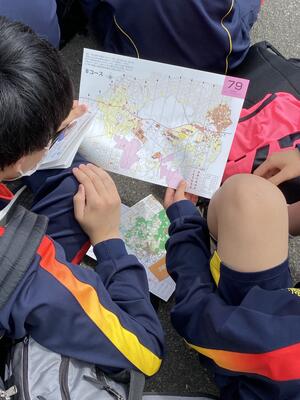 富士緑の休暇村に到着しました。これからオリエンテーリングです。地図の読み方やコンパスの使い方のレクチャーを受け、37班が時間差でスタートしました。各ポイントの記号を全て集めて一番早くゴールするのはどの班でしょうか?