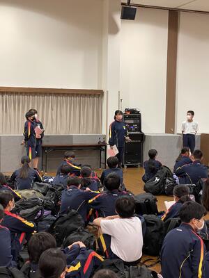 1日の最後はリーダー会議です。各学級の反省から、成果と課題を確認し、明日に生かすための会議です。一人一人のリーダーが、自分の思いをしっかり伝えようとしていました。学年主任の平原先生からは、リーダーたちの声かけに対して、感謝の言葉がかけられました。さらなる成長を期待したいです。今日1日お疲れ様でした。おやすみなさい。