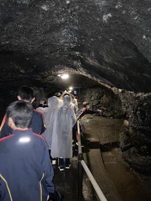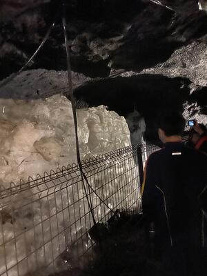 風穴洞では、まだ氷が残っていました。土砂降りの中でしたが、ガイドさんの説明を聞きながら、見学しました。
