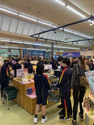 生徒が激励に駆けつけてくれています。在校生を引き立てているように