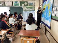 1年生の社会科の授業では、世界各地の生活について調べたことをパワー