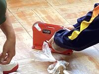 な大きさのあるジャガイモを均等に袋詰めし、バッグシーラーを