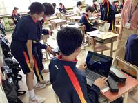 に参加する生徒達。用具係の生徒達は、パソコンで配られた説明資料を読み
