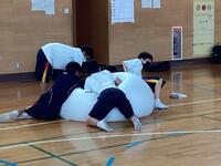 体育の授業で体操をする1年生は、思わず心配してしまうほど勇猛果敢