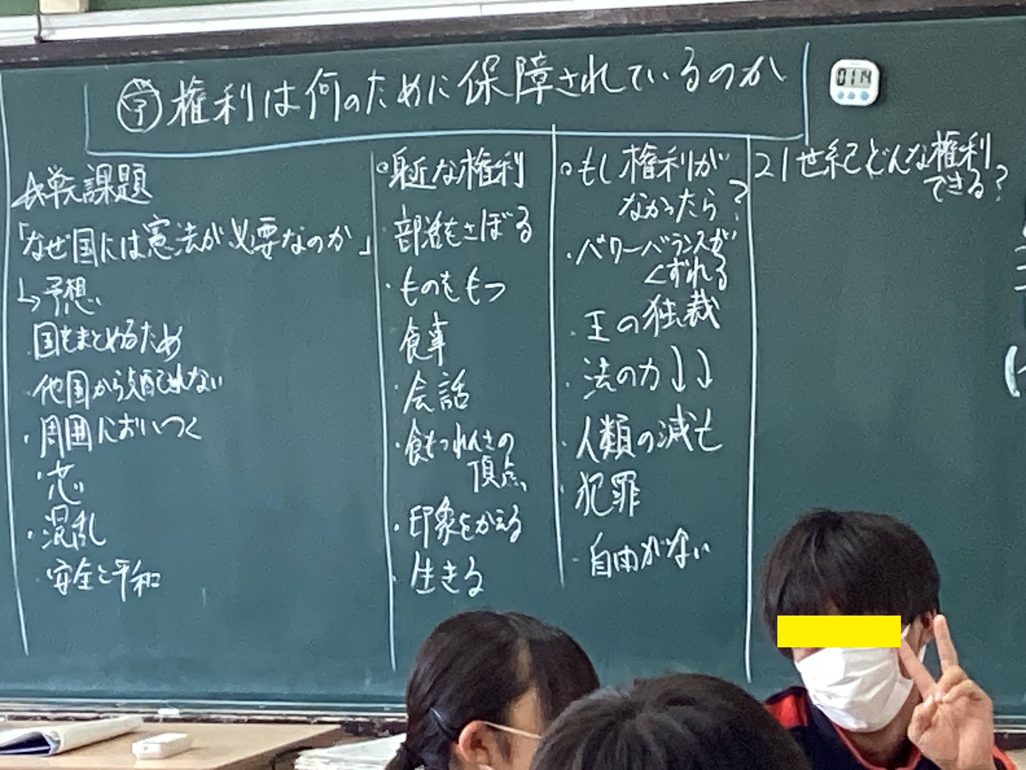 公民の授業で身近な権利を挙げる3年生ですが、部活を