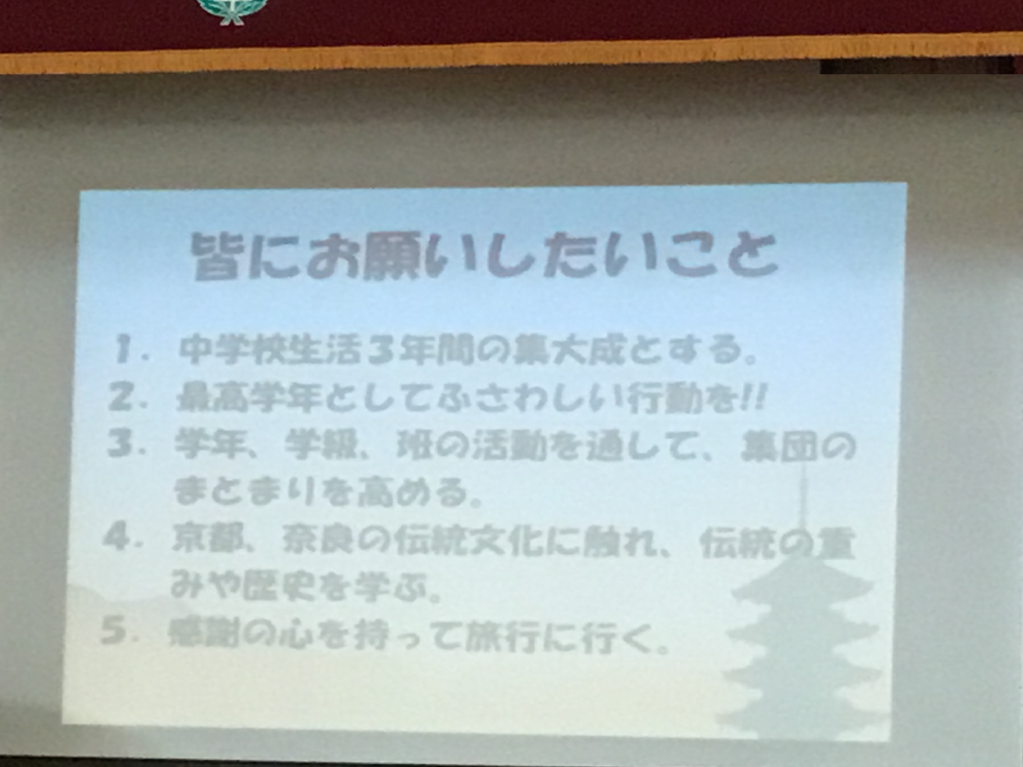 プレゼンテーションの中にあった「最高学年としてふさわしい行動を!!」