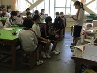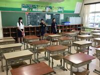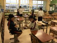 ため、3年生に教えてもらいながら掃除を進めています。まだ授業で使用していない