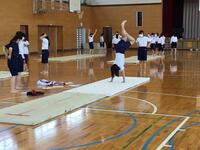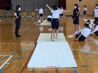 体育の授業でマット運動をする2・3年生の女子生徒達ですが