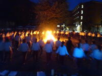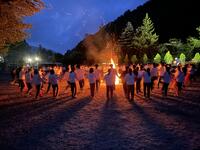 キャンプファイヤーと宿舎での様子