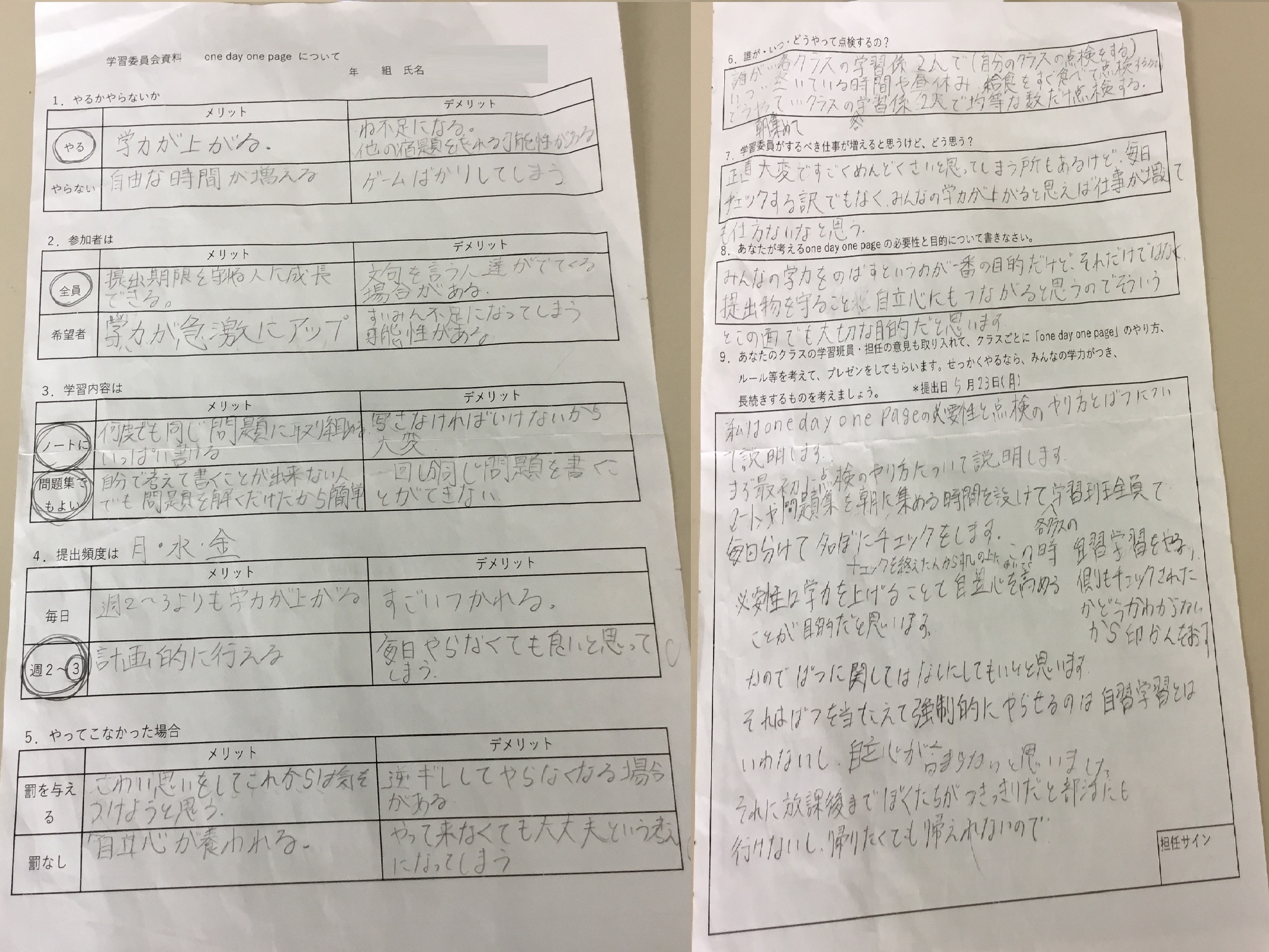 そんな生徒達の学習をサポートするのは学習委員会。「one day one page」