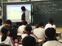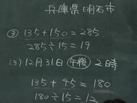 下の画像は1年生と2年生の地理の授業の板書ですが、数式が書いてあります。