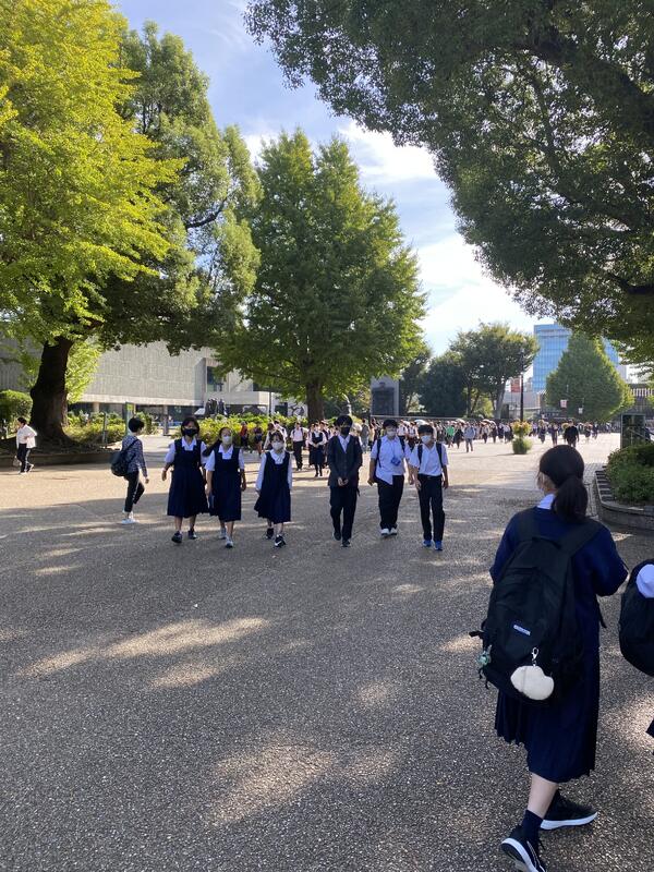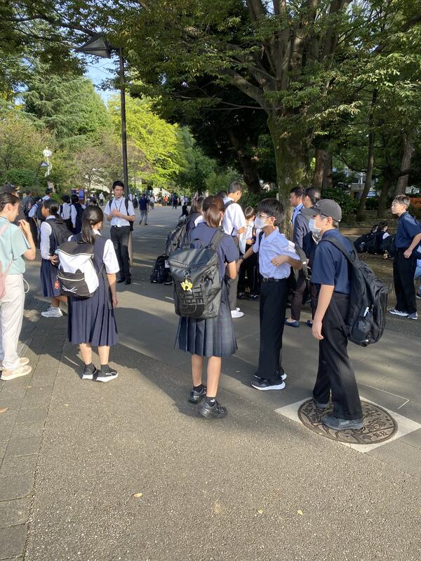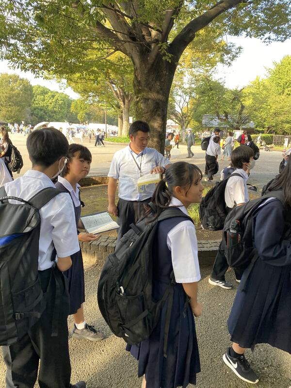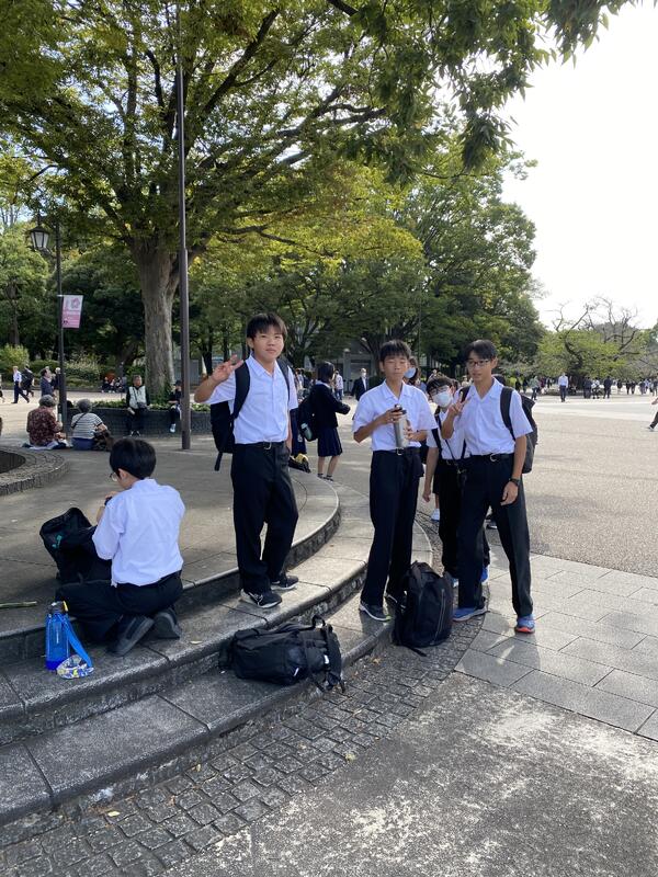今日は1年生の校外学習です。上野恩賜公園での班別行動です。天気にも恵まれ、幸先良いスタートです。柏駅でスマートフォンを受け取り、出発です。