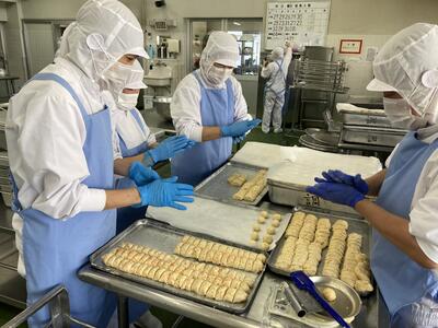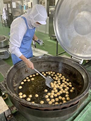 新メニューのお月見ドーナツでしたが、調理員さんたちが1つ1つ丁寧に丸め、きれいに揚げて仕上げました。