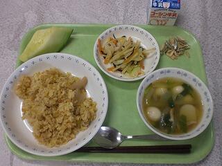 *今日は、三中の人気メニューでもあるキムチチャーハンを作りました。