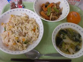 主菜はアミノ酸がたっぷりの黒酢を使った黒酢炒めです。