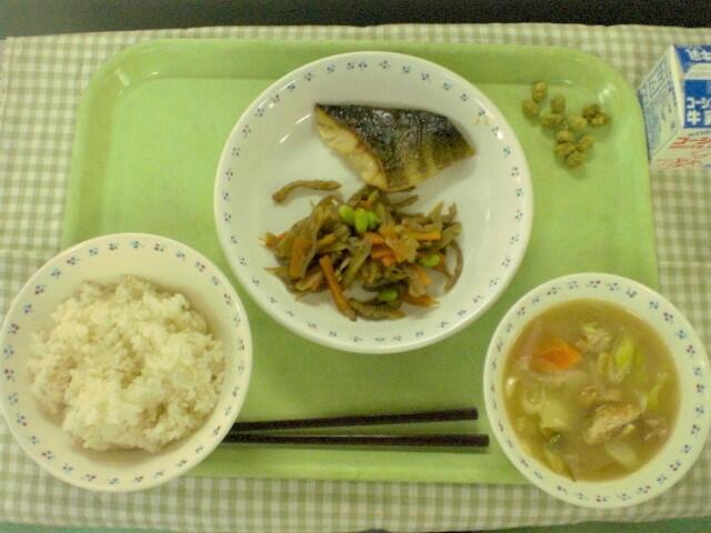 さて、今日の献立は、和食です。主菜はほっけの一夜干しです。ほっけには、体を作るたんぱく質はもちろん、成長期のみなさんに大切なカルシウムも豊富に含まれています。また、記憶力アップのDHAなども豊富に含まれており、栄養たっぷりの魚です。そして、生ではなく、一夜干しにすることで、生魚よりもグッと旨味も凝縮されます。