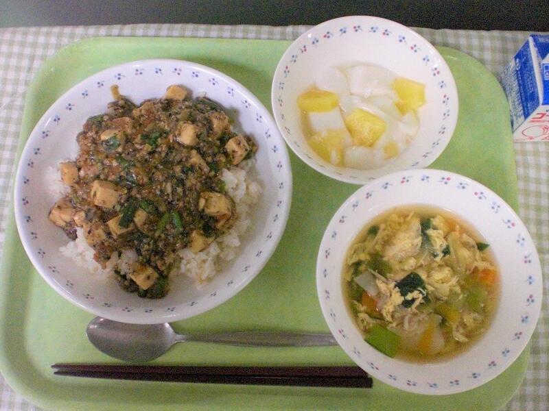 (献立表には麻婆豆腐飯と記載ありましたが、正しくは黒麻婆豆腐飯です。申し訳ございません。)