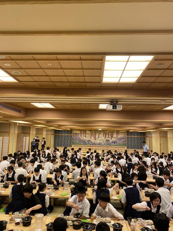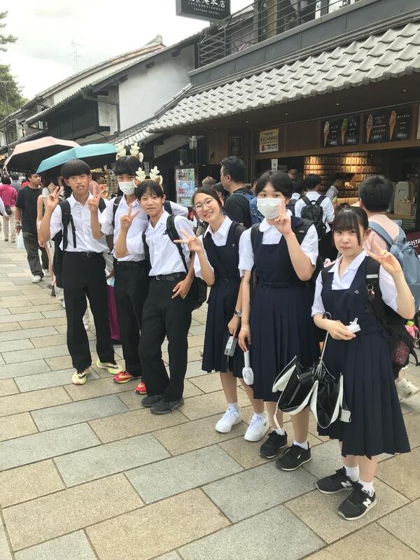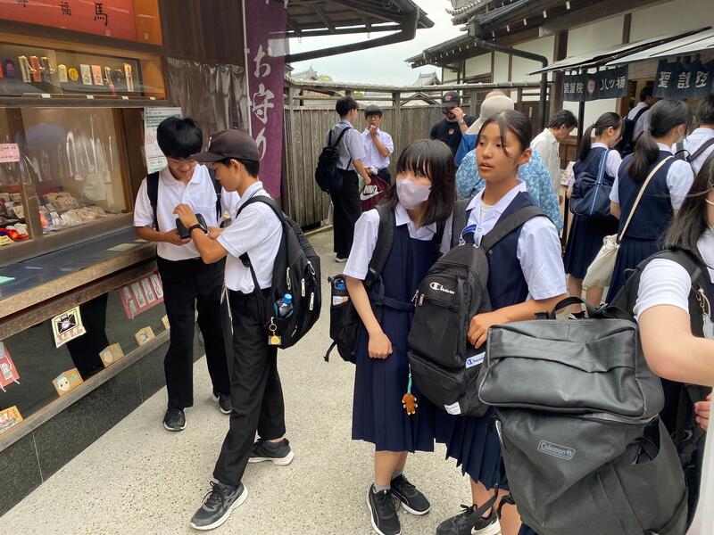 おはようございます。昨夜は京都市内でゲリラ豪雨があったようですが、判別行動の最後に少し雨が降られた班があったくらいで、特に影響はありませんでした。今日は晴れ。昨日の夜の雨のせいか、涼しい朝を迎えています。夜に雨の予報が出ていますが、宿舎到着後の予報なので大丈夫でしょう。朝ごはんをしっかり食べて、2日目、京都班別学習のスタートです!