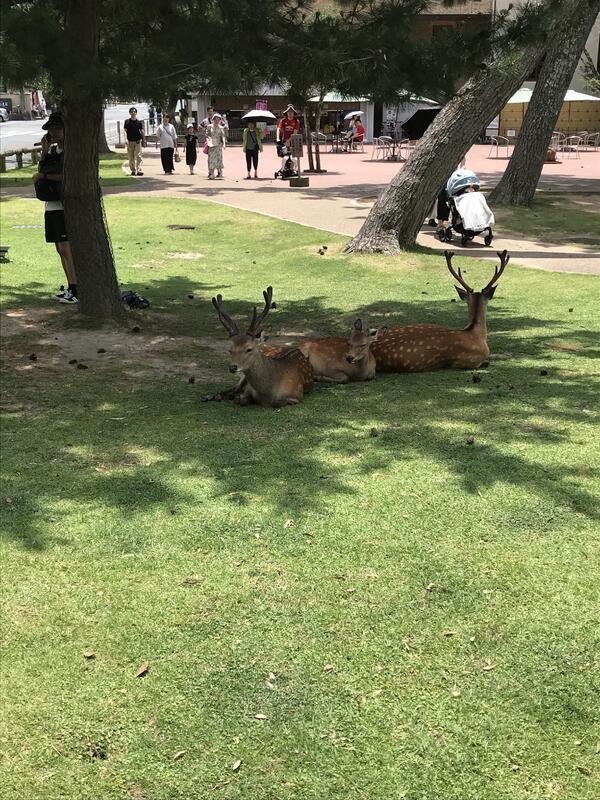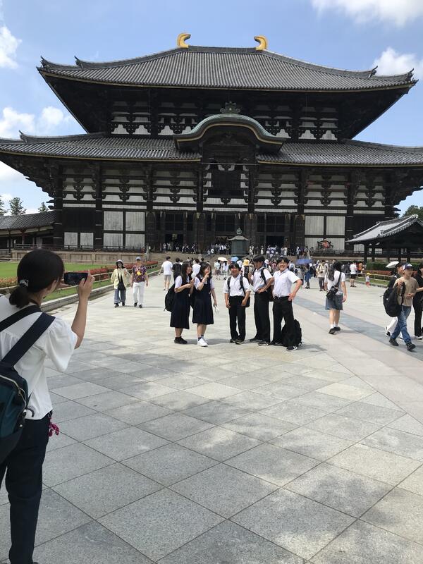 奈良で班別学習のスタートです。みなさん鹿の落とし物にはご注意下さい。
