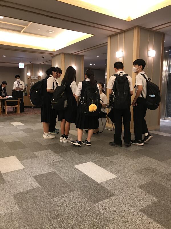 班別学習を終えて、旅館に戻ってきました。疲れは見えますが、笑顔です。