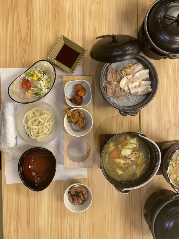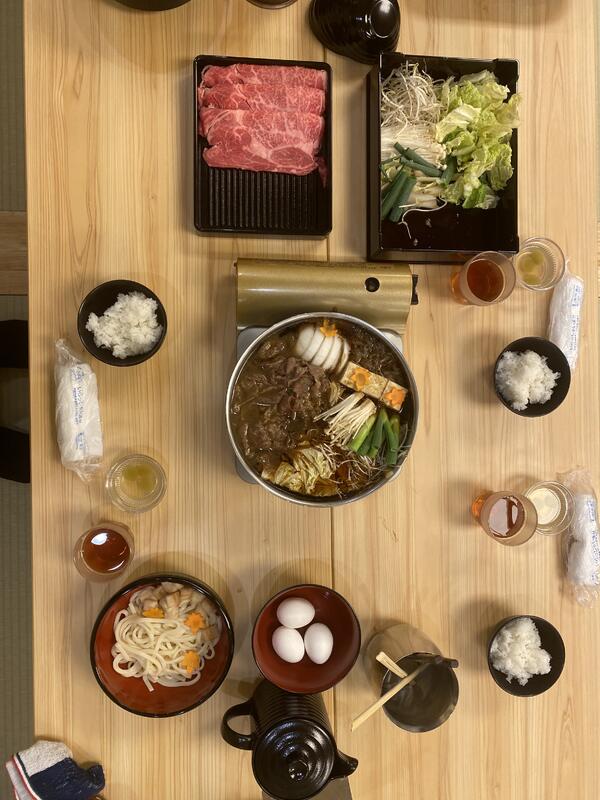 1日目の夕食は、すき焼きです。明日に備えて、たくさん食べてエネルギーを充電しましょう。