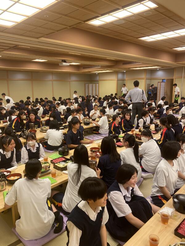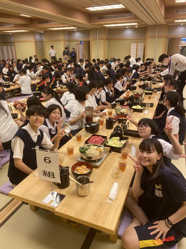 班別行動を終え、生徒たちが宿舎に到着しました。この後はお楽しみの夕ご飯です。