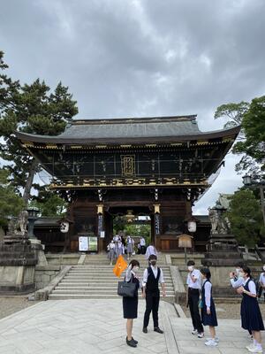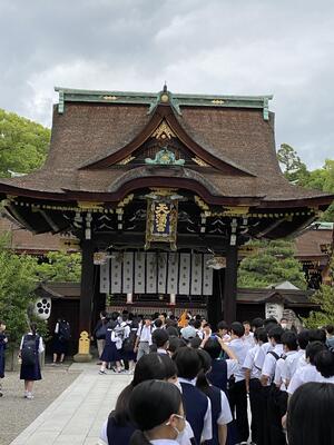 北野天満宮では、学年全体で御本殿に拝殿し、ご祈祷をしていただきました。北野天満宮は学問の神様である菅原道真公が御祭神としてまつられる、全国一万二千社ある天満宮、天神社の総本山。きっと御利益があると思いますが、自らの努力も忘れてはいけません。