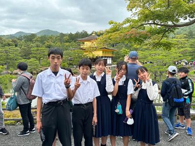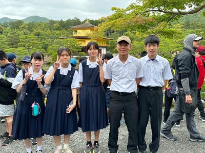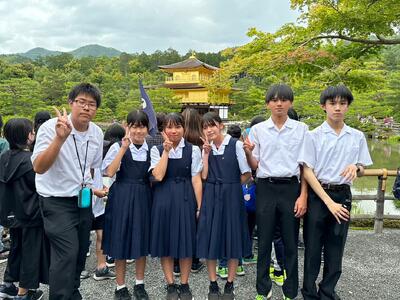 1組は鹿苑寺金閣、2.3.4組は東映太秦映画村を訪れています。いよいよ修学旅行も終盤です。