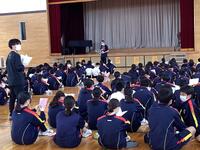2年生は社会の授業で、高知県にある馬路村の過疎化対策について