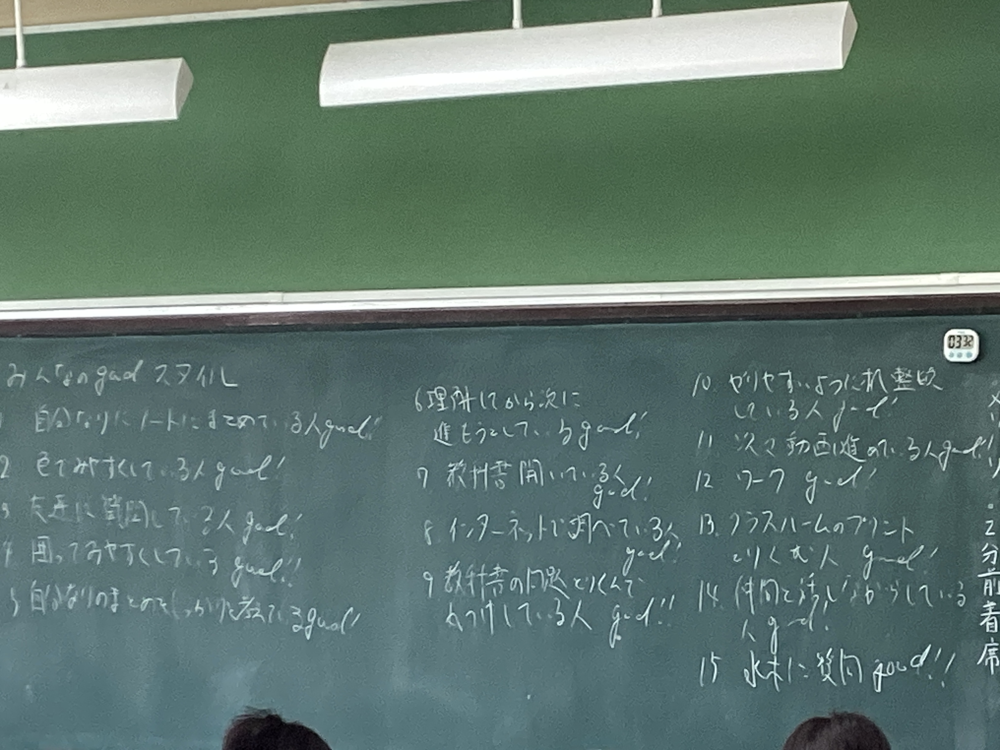 で完結するため、黒板には生徒達の行動を褒める言葉しか書いていません。