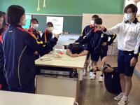 本日配付した尿検査用の容器ですが、全校生徒分の容器を菜の花学級の生徒達が