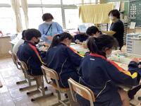 ずつつまみながら丁寧にセロハンテープにくっつけていました。技能教科
