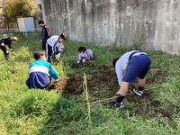 菜の花学級ですが、テニスコートの裏にある雑草の生い茂った土地の除草作業