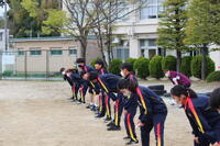 校庭の桜が見頃を迎えていますが、3年生が繰り広げる学級対抗