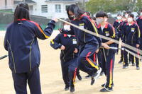 全員跳びと八の字跳びの合計数で競い合いました。前回実施したときは、多くのクラスで1回も跳べなかったという結果に終わりましたが、今回は、ほとんどのクラスで1回以上跳ぶことができ、成長を実感しました。
