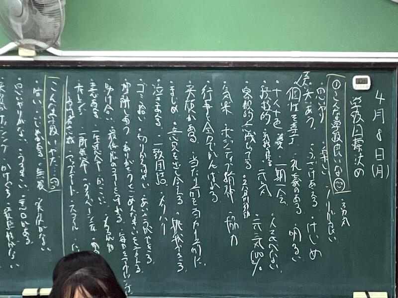 学級が開かれた3日目の本日は、各クラスが学級目標やクラスの