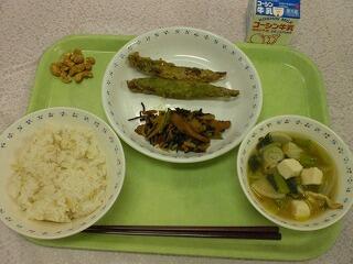 豆まきには炒り大豆ですが、給食では大豆の煮物にしました。