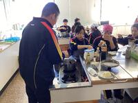 前回の調理実習で中華風サラダを作った1年生は、次のステップ