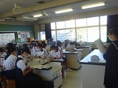 4名の先生が研究主題である「自ら考え、互いに学び合える生徒の育成」を目指し、研究授業を行いました。