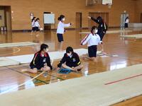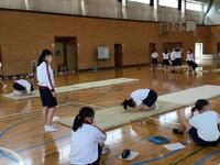 体育の授業でマット運動をする2・3年生の女子生徒達ですが
