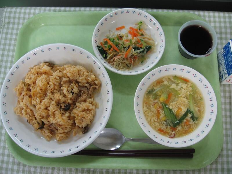 今日の献立は、中華です。主食はキムタク炒飯です。その名の通り、キムチとたくあんが入った炒飯です。今は一般的になっているキムタク炒飯ですが、一番最初は長野県の塩尻市の栄養士さんが発案されたそうです。長野県は野沢菜など漬物が有名で、子供たちにも漬物を食べてほしいという思いから、できたメニューとのことです。確かにキムチとたくあんの相性がよく、たくあんの風味は強すぎないので漬物が苦手な人でも食べやすい一品です。キムチ炒飯自体、三中でも人気の美味しいメニューなので、そこにたくあんが加わった、今日のキムタク炒飯ももりもり食べてもらえたらと思います。