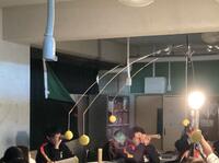 宇宙の勉強をしている3年生フロアには、太陽系のテープが貼られています。