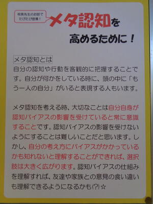 集会で校長から「保健室前の掲示物」が紹介されました。「まだ見ていない」という生徒も多くいたようですので、こちらから紹介させていただきます。