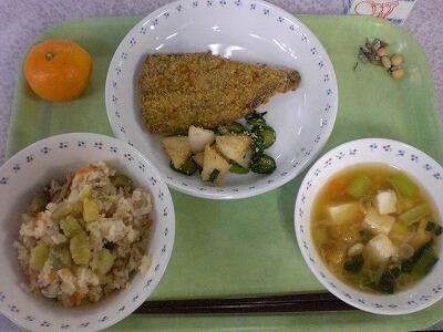 きょうは、秋刀魚の他に枝豆を混ぜて彩良く仕上げました。