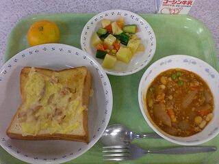 給食では、ひき肉だけだはなく、茹でた大豆をみじん切りにして混ぜ込んであります。