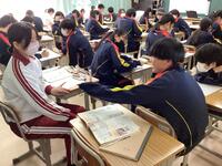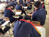 3年生が入学願書を書いています。授業でも、社会科では1年生の日本史の