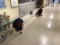 本日は年末恒例の大掃除の日でしたが、職員室前の廊下を掃除する2年生は