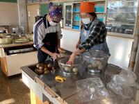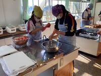 調理実習でカレーを作る菜の花学級の生徒達も、野菜の皮をむく作業で