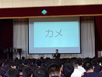 学年集会で真面目な話を聞いています。真面目な集会ではありましたが